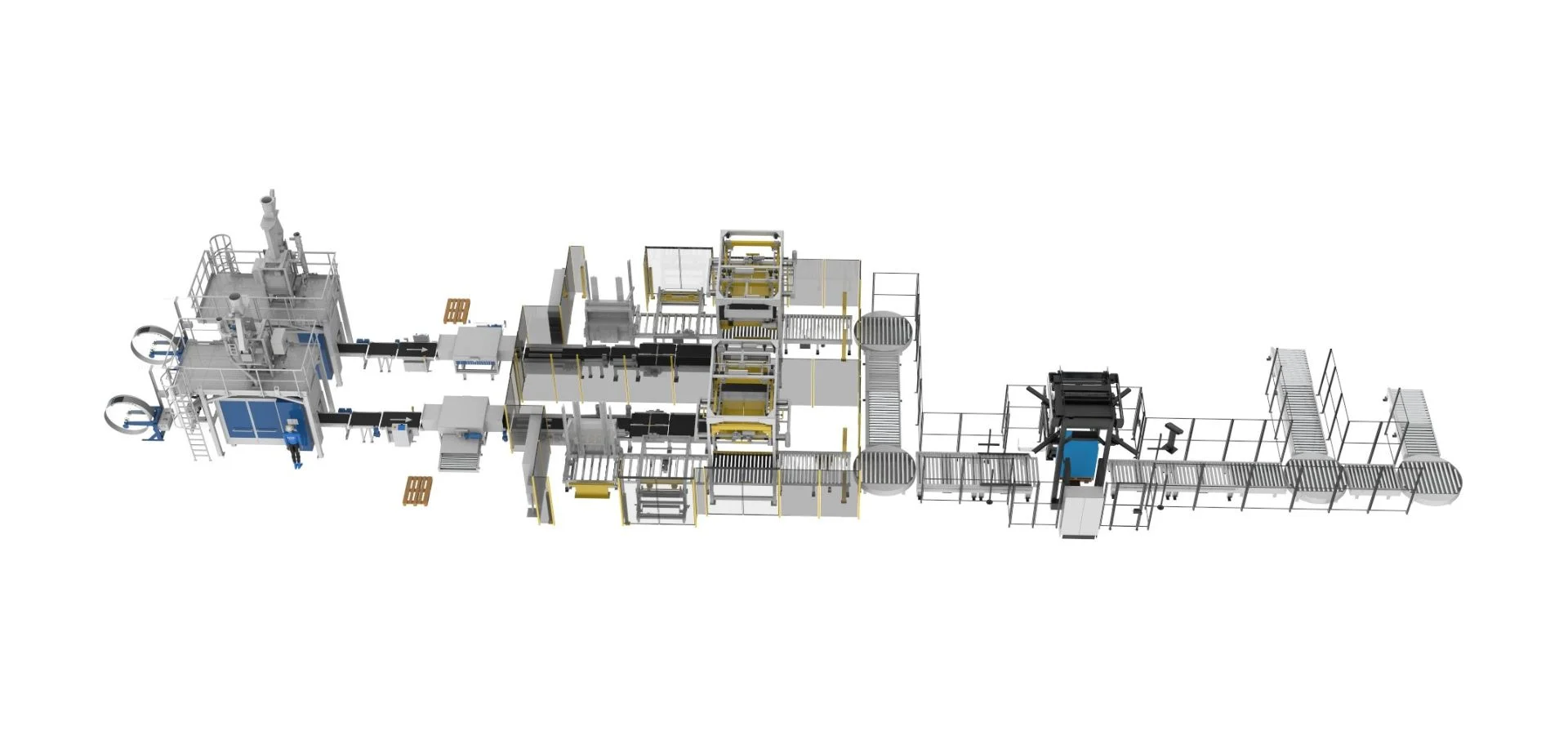 Ensachage, palletisation, banderolage ou houssage : nous vous fournissons un système de fin de ligne complet.